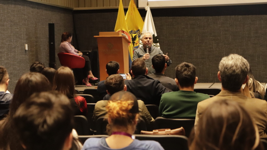 Gabriel Kaplún charla en la Universidad Central / Tomada: Sebastián Arias.
